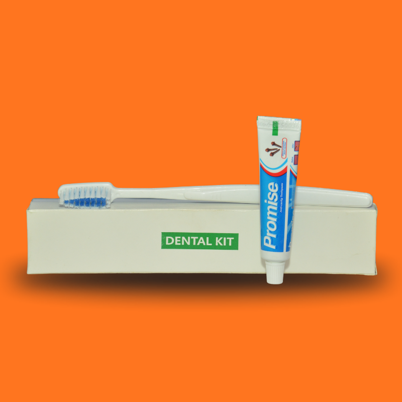 This dental kit includes Promise toothpaste and a Spectra toothbrush. It is neatly packed and suitable for hotels to provide basic oral care and freshness to guests.